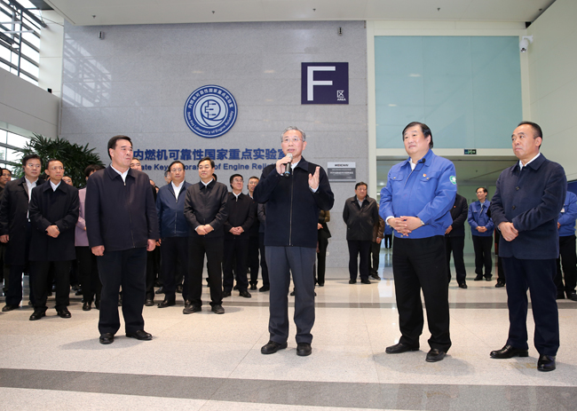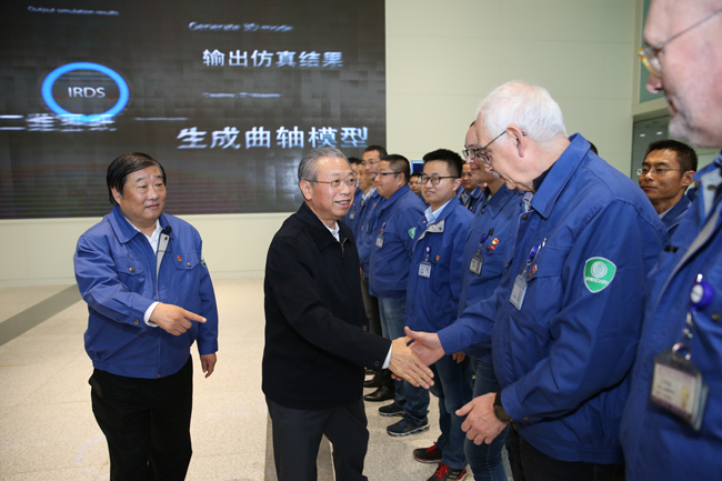 2018年11月28日下午,山东省委书记、省人大常委会主任刘家义率全省新旧动能转换项目落地现场观摩会一行走进潍柴,谭旭光全程陪同并汇报。