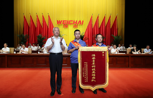 凌文副省长为潍柴青年科技英雄团队代表授旗。会前,凌文副省长会见了潍柴青年科技英雄团队家属。会后,共青团山东省委书记刘天东又会见了潍柴青年科技英雄团队家属及所在单位代表。潍柴集团作出向青年科技英雄团队学习的决定,号召全体潍柴人,学习他们牢记使命、敢当重任的崇高境界,学习他们忠诚企业、献身事业的价值追求,学习他们心无旁骛、勇于超越的创新意识,学习他们众志成城、密切协作的团队精神,学习他们传承文化、躬身践行的榜样力量,激励全体科技工作者,以青年英雄团队为榜样,加快迈向世界一流,让潍柴的科技大旗在全球高高飘扬!