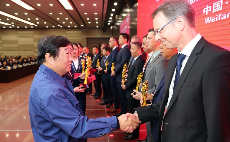 (图示:谭旭光向全球优秀供应商代表颁奖)