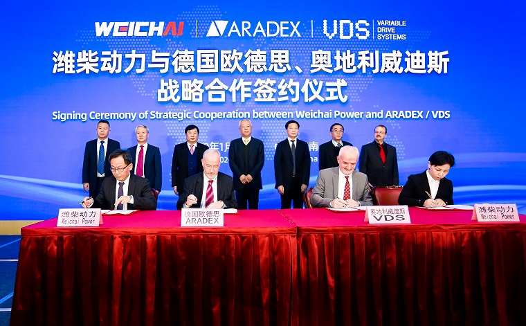 2020年1月15日上午,潍柴动力分别与德国欧德思公司、奥地利威迪斯公司在山东济南签署战略合作协议,正式开启合作新征程。山东省副省长凌文、山东省相关领导以及媒体代表等,共同见证了这一历史时刻。