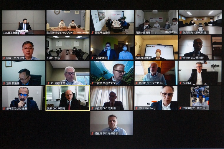德国凯傲集团、林德液压、欧德思,意大利法拉帝,法国博杜安,英国锡里斯,奥地利威迪斯,美国德马泰克、PSI,加拿大巴拉德,日本东京创新中心,印度公司,俄罗斯卡玛斯合资公司,白俄罗斯马兹合资公司等11个国家、14家企业的CEO汇报了所在国家和各自企业的情况,对潍柴总部提供的防疫物资支持表示衷心感谢。