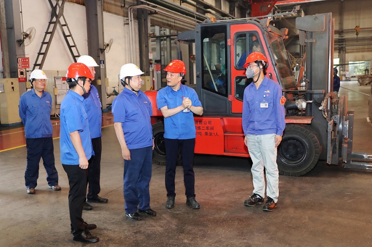 6月26日上午8:30,谭旭光来到潍柴铸锻公司,看望端午节期间奋战在高产一线的铸造员工。